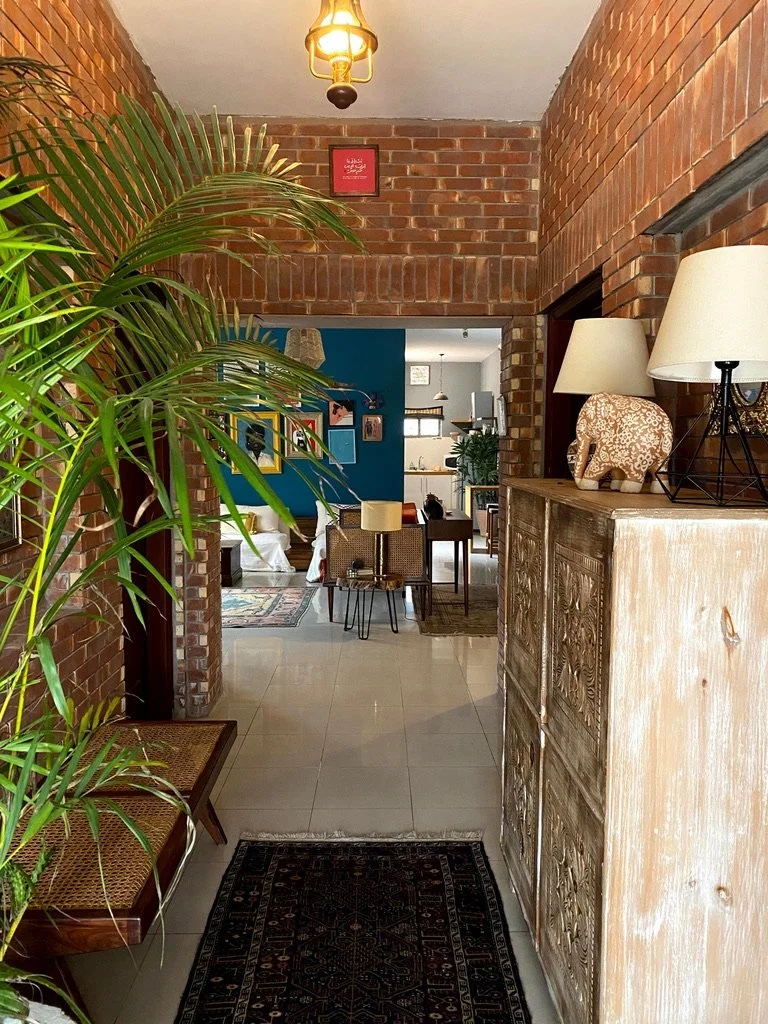 The first decision I had to make was whether to add a brick wall. We decided to go for it, and it turned out to be the best decision for the space. The old-timey vibe of the house was something we loved, and the red brick (integral to the traditional architecture in Lahore) accentuated that character even further.